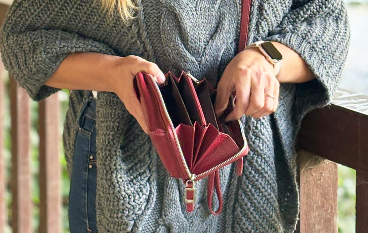 Das Schlüsseletui Tess beinhaltet zwei Karabinerhaken und ein zusätzliches Reißverschlussfach an der Rückseite.